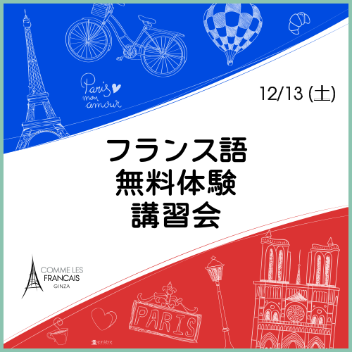 フランス語のグループレッスンやプライベートレッスン、カルチャークラス、会話カフェなどたくさんのクラスがございますので、ご興味がございましたらお気軽にお問い合わせくださいませ。